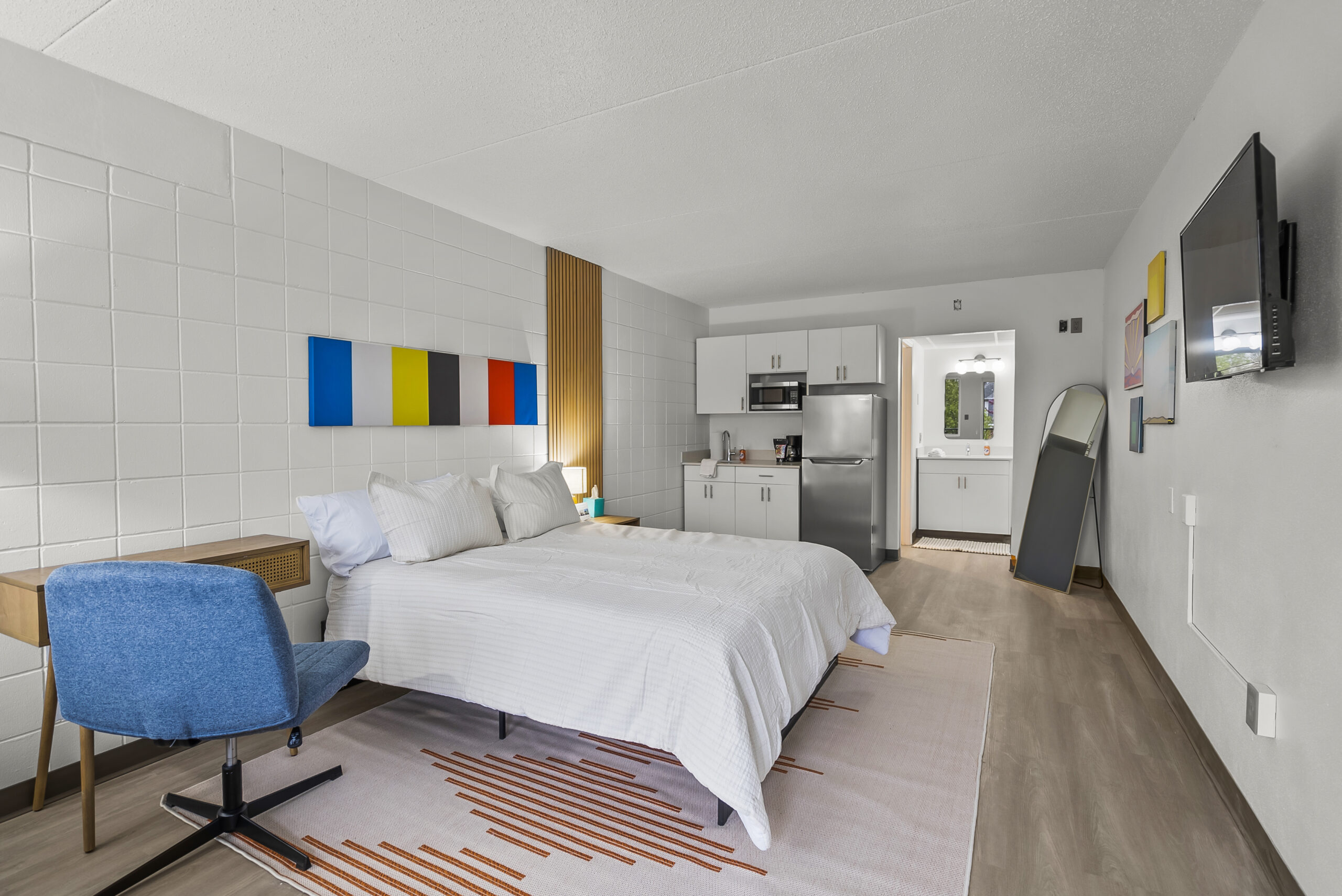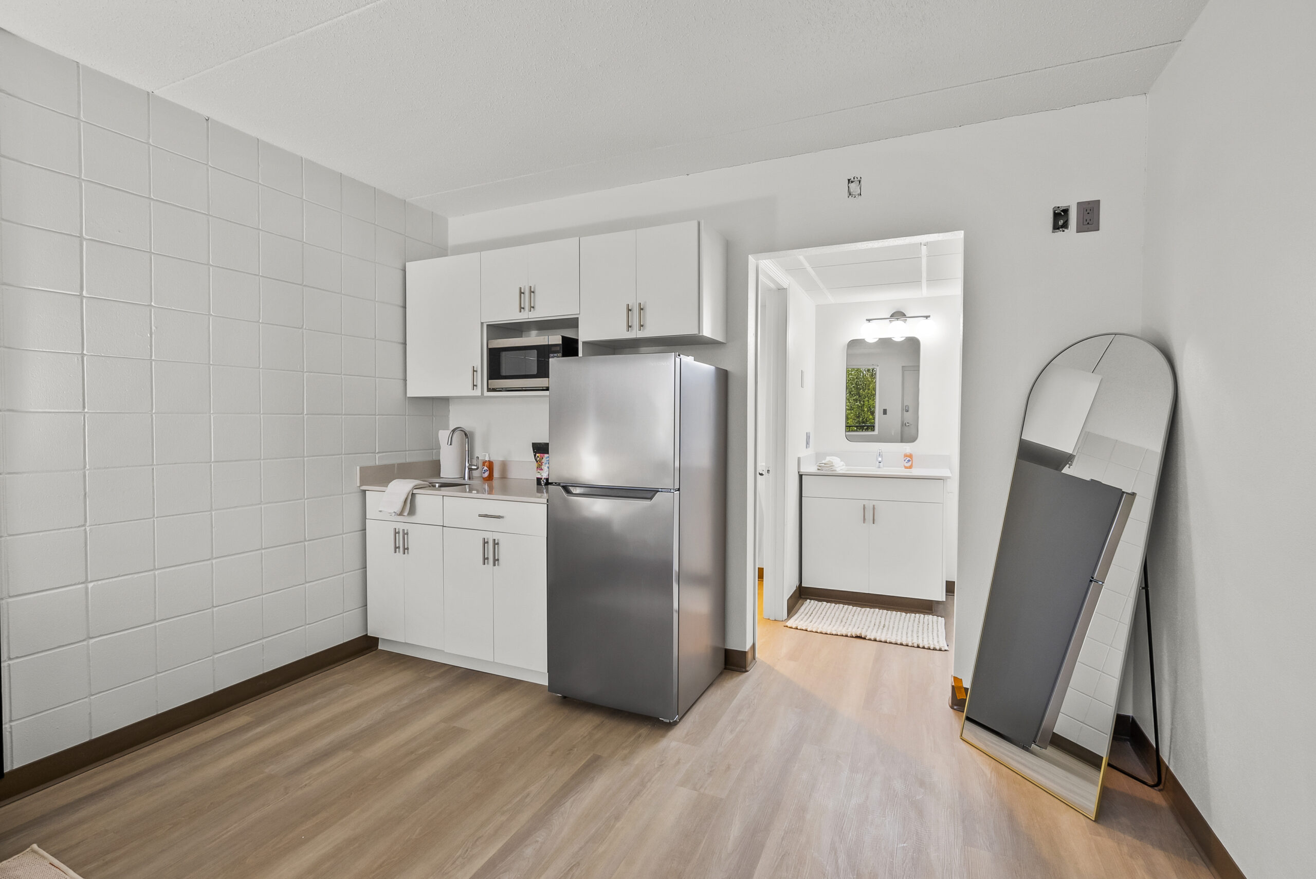 The Lindell Motor Lodge is pleased to offer a freshly updated unit. Turning this once motel style property into studio units. Updates include paint, flooring, addition of a kitchenette, furnishings and more!