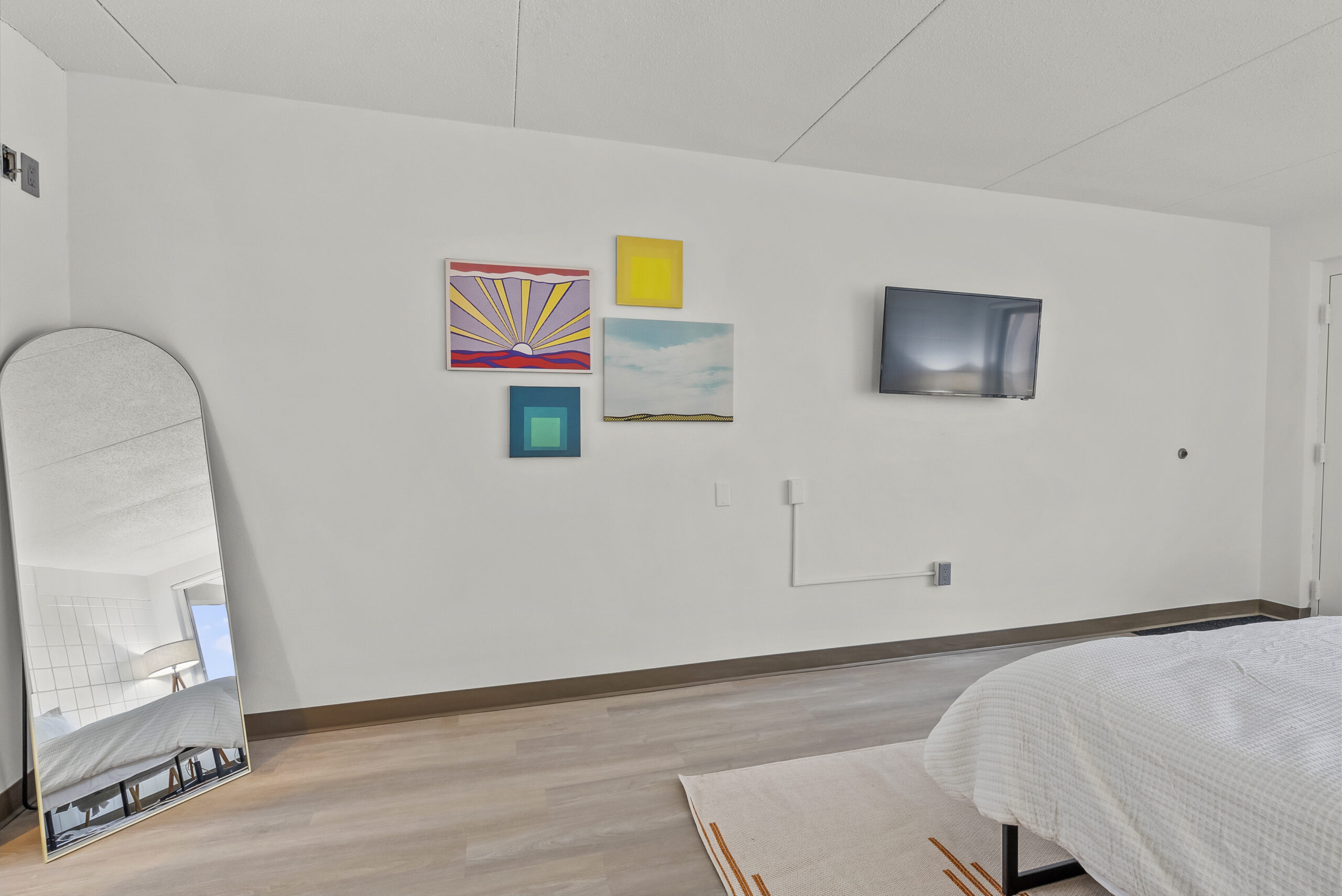 Units measure 300sqft. Updated flooring, paint, furniture, and addition of a kitchenette fully equipped with refrigerator, freezer, microwave, toaster, coffee maker and more! Enjoy your stay in downtown Cedar Falls!